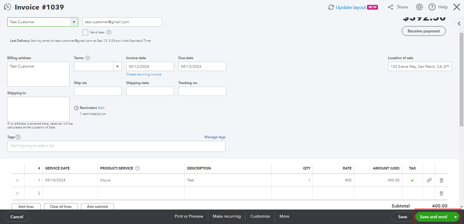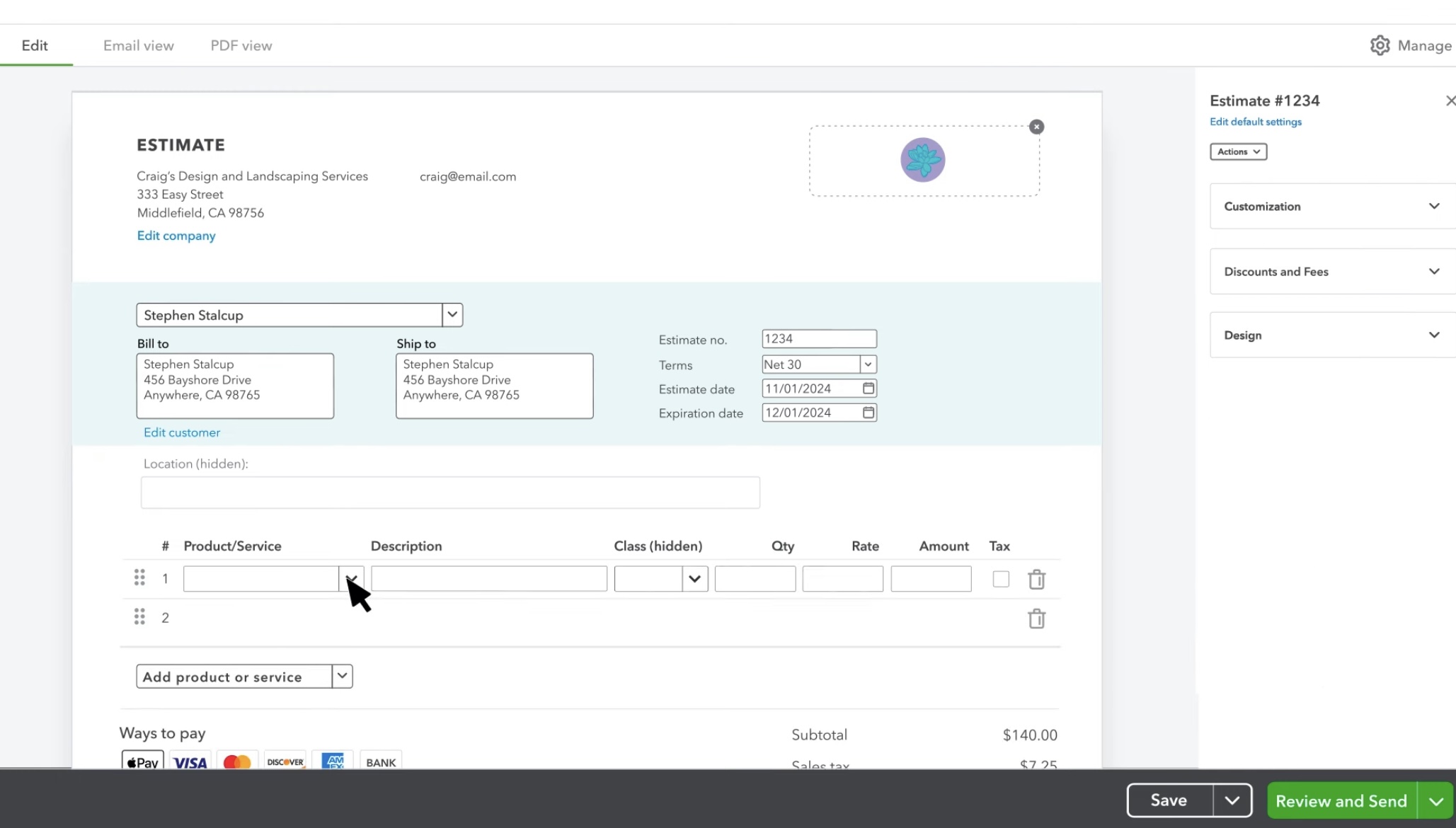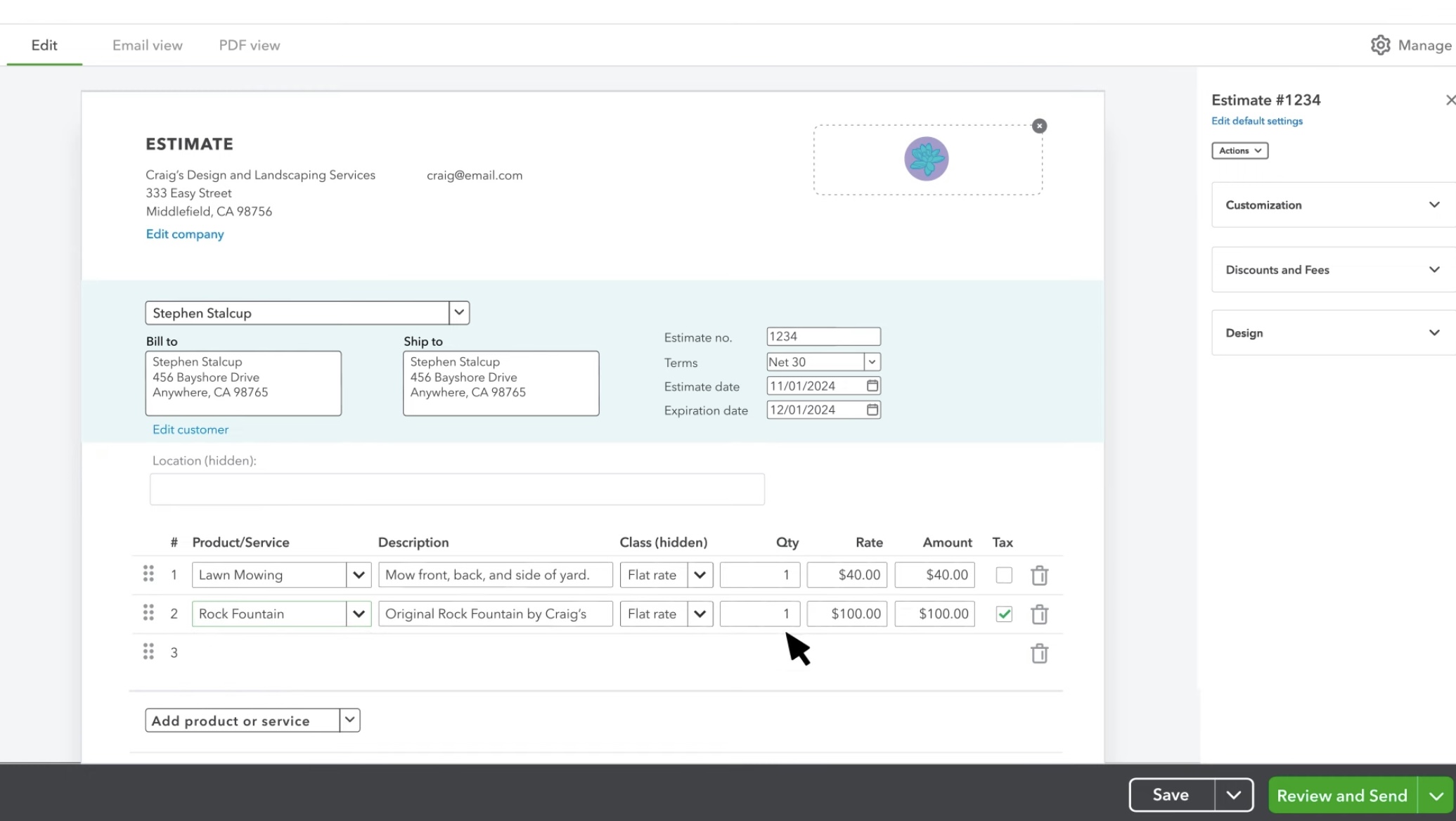 Using scraps of paper or spreadsheets to generate rough cost estimates is a thing of the past. With QuickBooks, you can get a much more efficient and refined solution. With a few clicks, you can generate customized estimates in QuickBooks Online. Also, users can provide a clear and accurate breakdown of costs, including item descriptions, quantities, rates, and taxes, to ensure that there are no ambiguities.