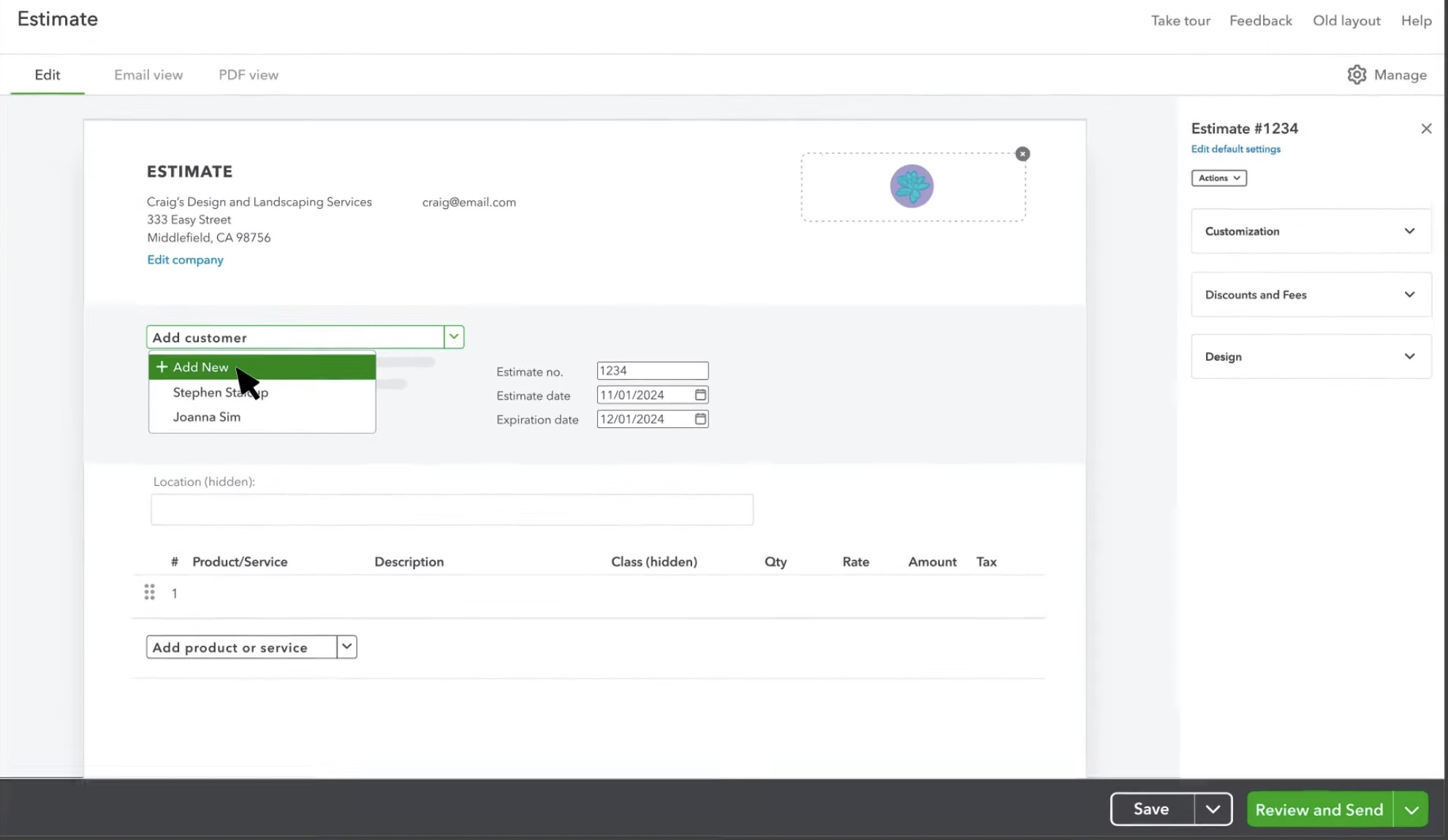 You can create an estimate in QuickBooks by entering the client’s details and itemizing the projected costs. Here are the 3 steps to create an estimate and convert it to an invoice using the new layout: