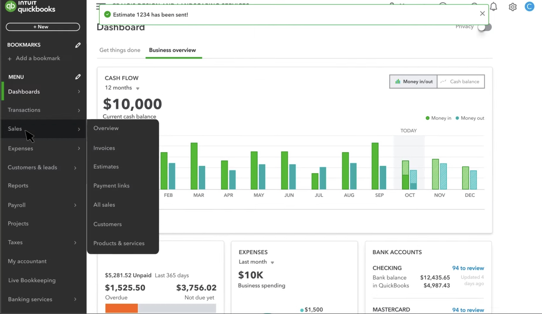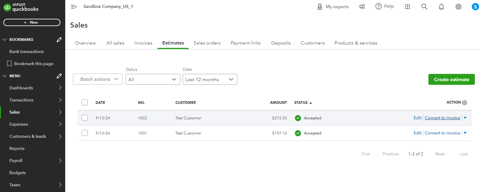 As soon as an estimate has been created and converted into an invoice, it’s time to review your open estimates in QuickBooks Online to ensure nothing has been missed.