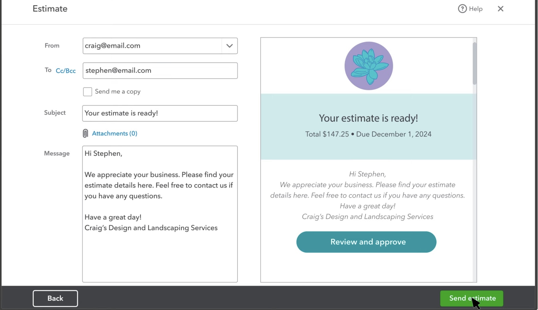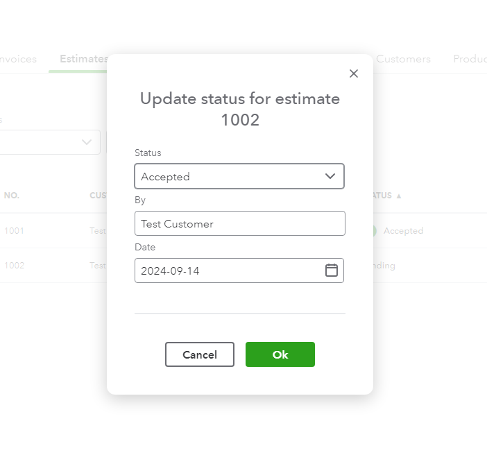 Once you send the estimate to your customers they have the option to either accept it, or decline it. Customers can do this directly from their email and QuickBooks update this information itself by changing the status of the estimate.